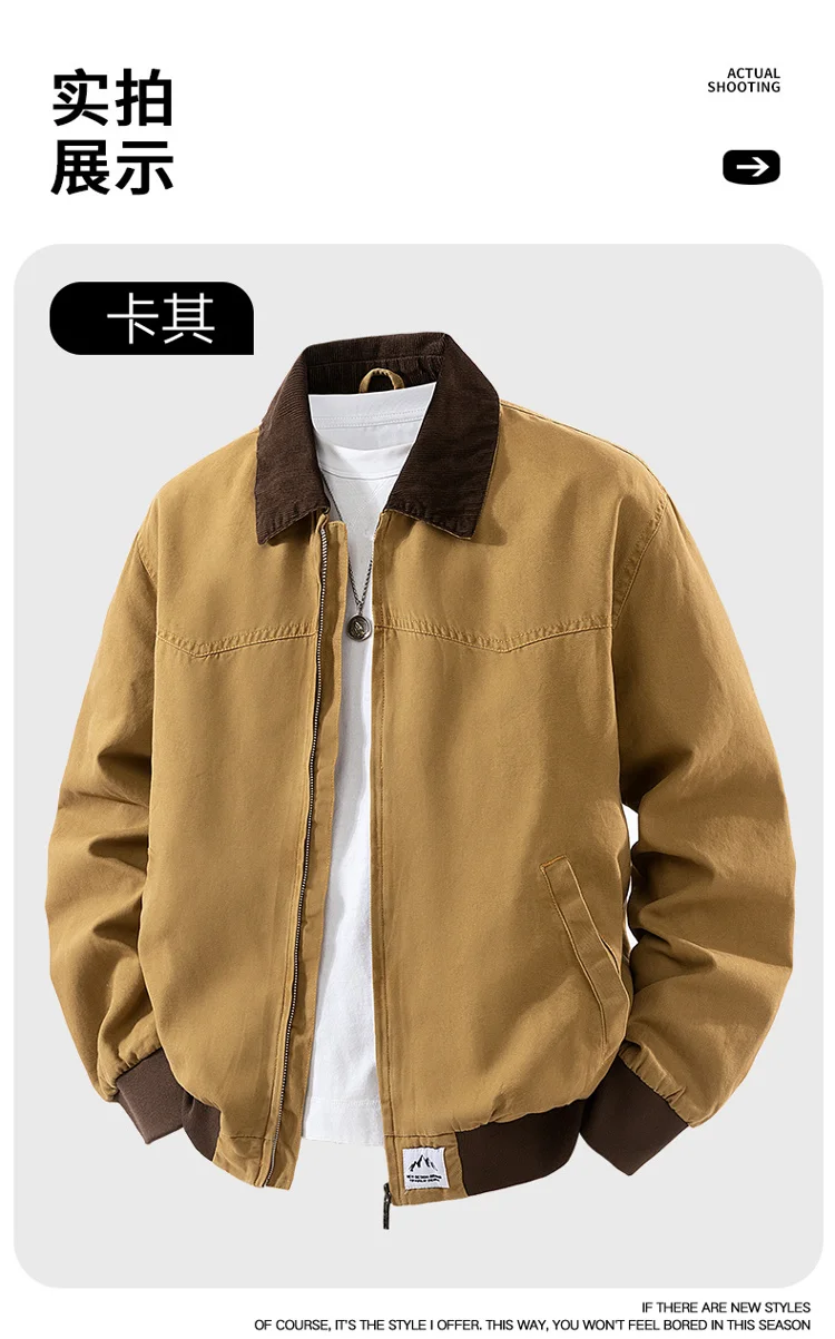 latest model American Retro Washed Cotton Jacket Men’s New Spring Workwear Casual Lapel Jacket Men’s Rugged and Versatile Sports